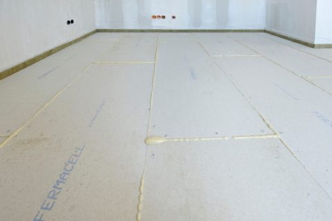 Gipsfaser Estrich-Elemente werden ohne und mit unterschiedlichen Dämmstoffkaschierungen angeboten. Die Verlegung erfolgt schwimmend im „schleppenden Verband“. Praktischer Vorteil: Die Estrich-Elemente sind nach Aushärtung des Klebers sofort begehbar. Nachfolgearbeiten, wie die Verlegung von Fußböden, können schnell beginnen. Estrich-Elemente werden oft im Altbau verwendet.
